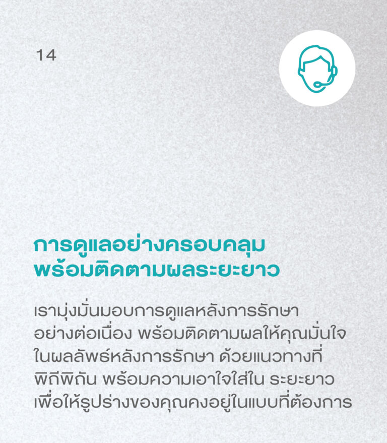 ทีมแพทย์และเจ้าหน้าที่ของเราพร้อมด้วยเทคโนโลยีที่ทันสมัย ดูแลความสะอาดและความปลอดเชื้อทั้งก่อนและหลังการผ่าตัด